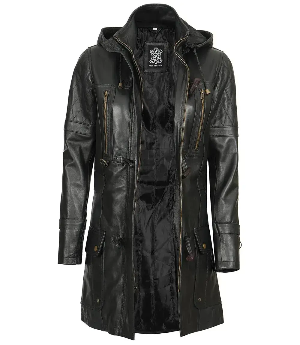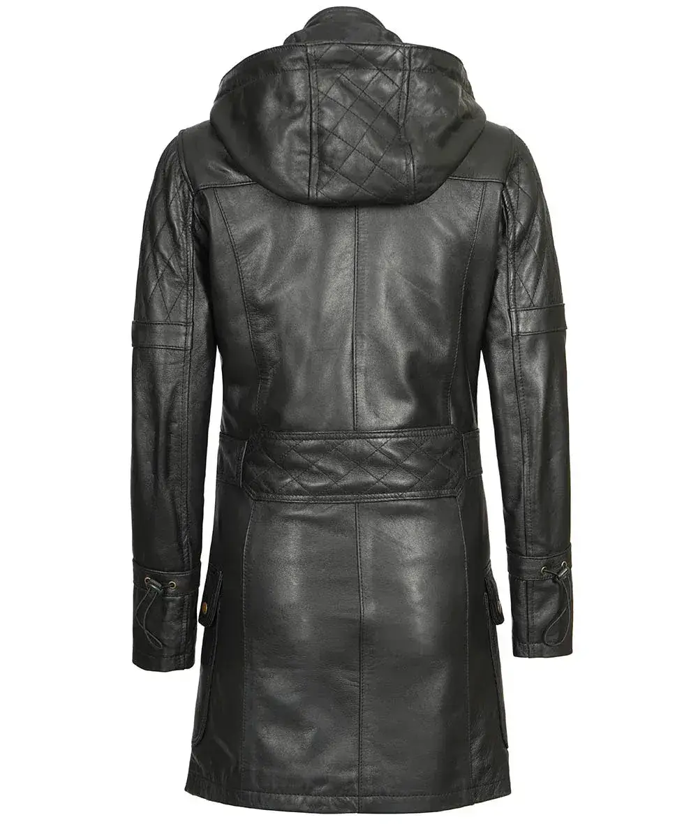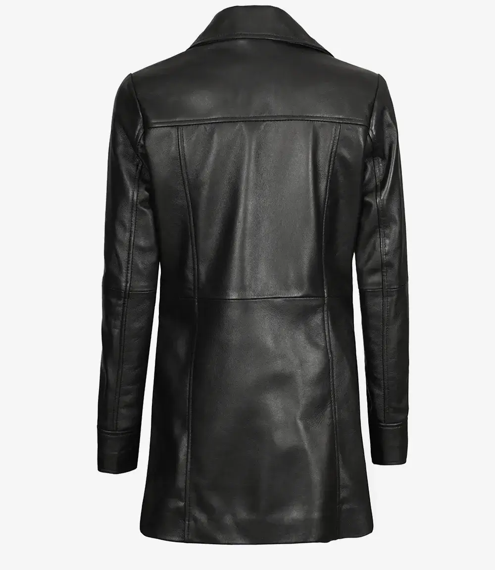 Bitonto Womens Black Leather Coat – 3/4 Length