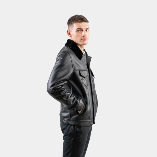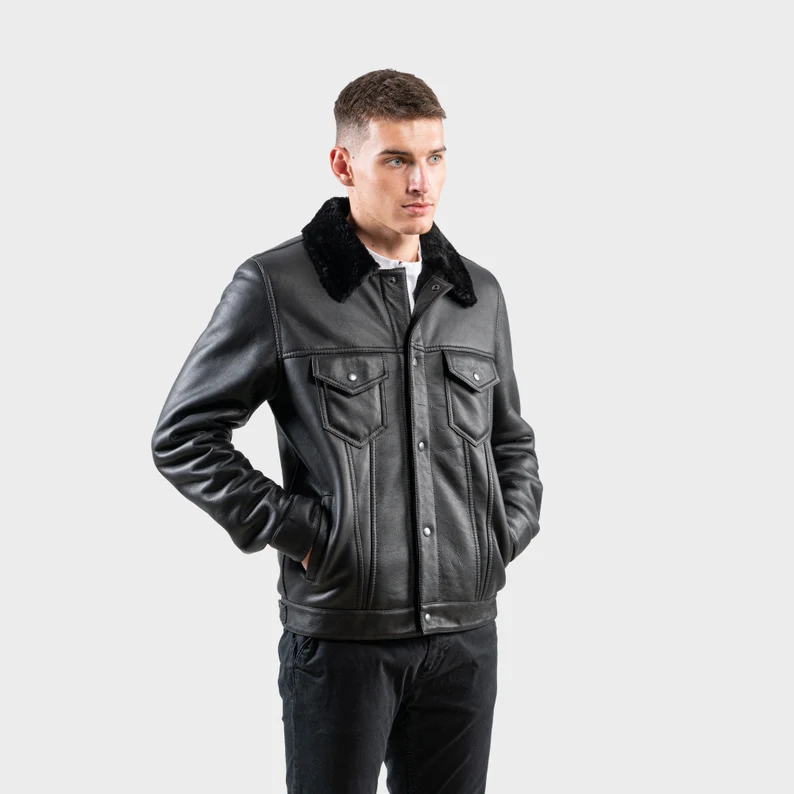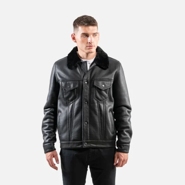Black Sheepskin Fur Jacket: Men’s Suede Leather Coat